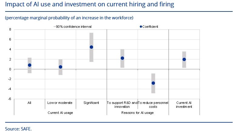 ECB economists Laura Lebastard and David Sondermann published a report based on survey data from more than 5,000 euro-area firms, and found that, for now, AI is a job creator.