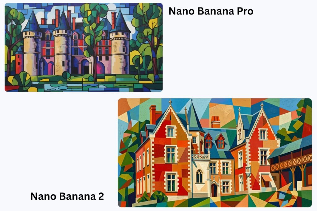 An image comparing the image generation capabilities of Google’s Nano Banana Pro AI model to Nano Banana 2.