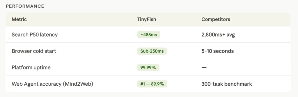 The infrastructure argument is not only about avoiding vendor dependencies. When every layer of the stack is owned by the same team, the system can optimize for a single outcome: whether the task completed. When TinyFish’s agent succeeds or fails using its own search and fetch, the company gets end-to-end signal at every step — what was searched, what was fetched, and exactly where failures occurred. Companies whose search or fetch layer runs on a third-party API do not have access to this signal.